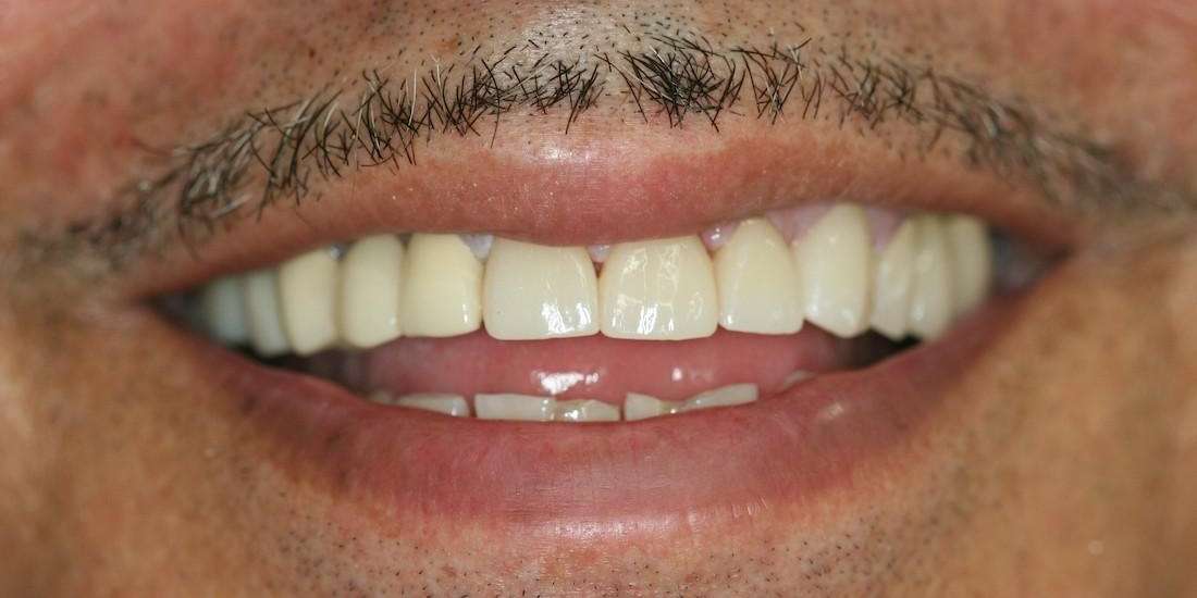 Dr. Khan suggested placing only four new crowns to close all the spaces and make his smile more symmetric.